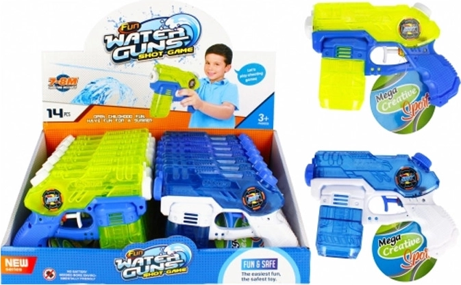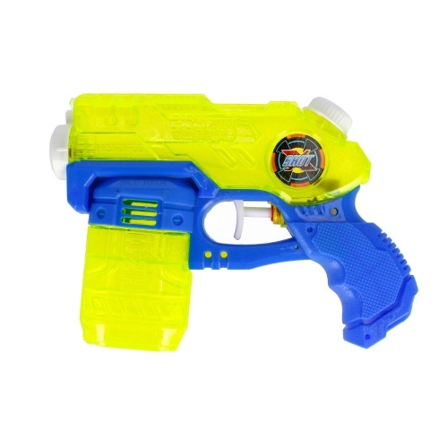 Denne farverige vandpistol imponerer med sit gennemsigtige kabinet, ergonomiske håndtag og pålidelige aftrækker. Takket være de kompakte mål 17 × 12 × 4 cm kan børn nemt gribe og betjene den. Vælg mellem to stilfulde varianter med blå-hvide og neon-gule elementer.