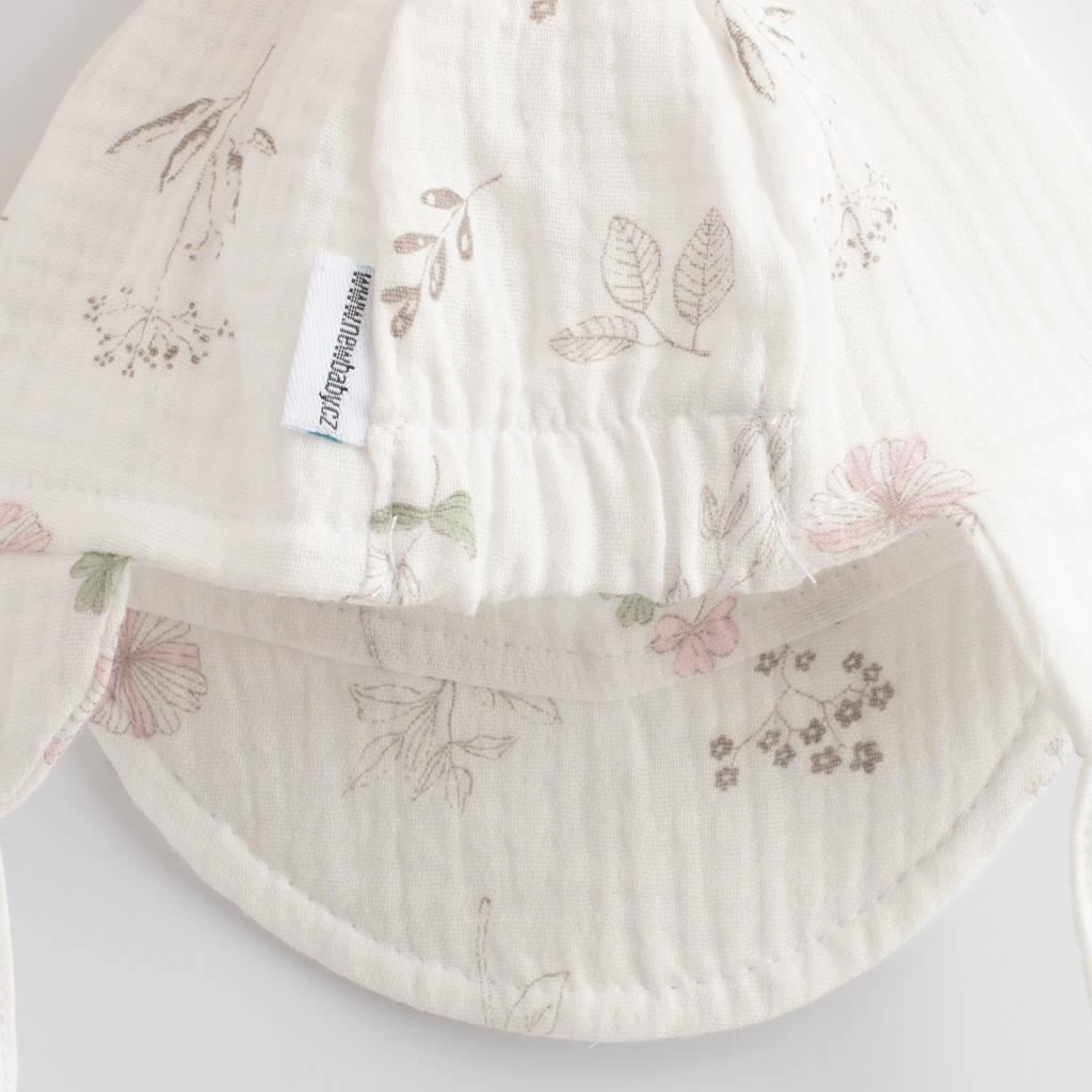 Leder du efter en perfekt let sommerhat til din baby? Hatten med skygge New Baby Zoe er syet i blød muslin, som ånder fremragende og hjælper med at forebygge overophedning. Den anatomiske form omkring ørerne og bindebåndene sikrer, at huen sidder sikkert og er maksimalt komfortabel for barnet.