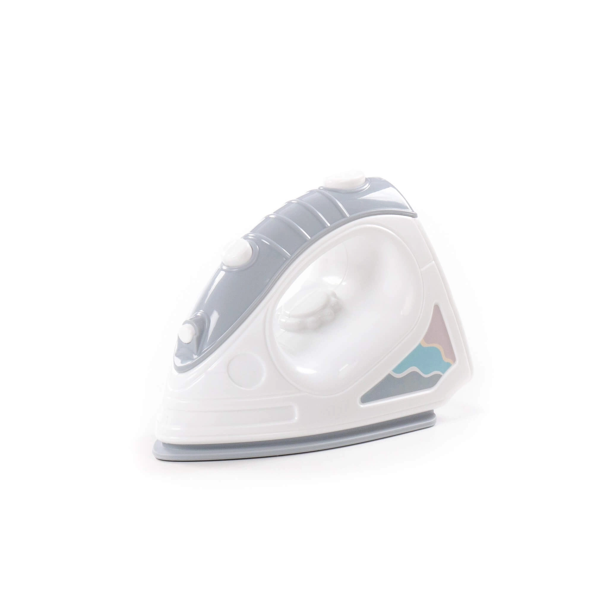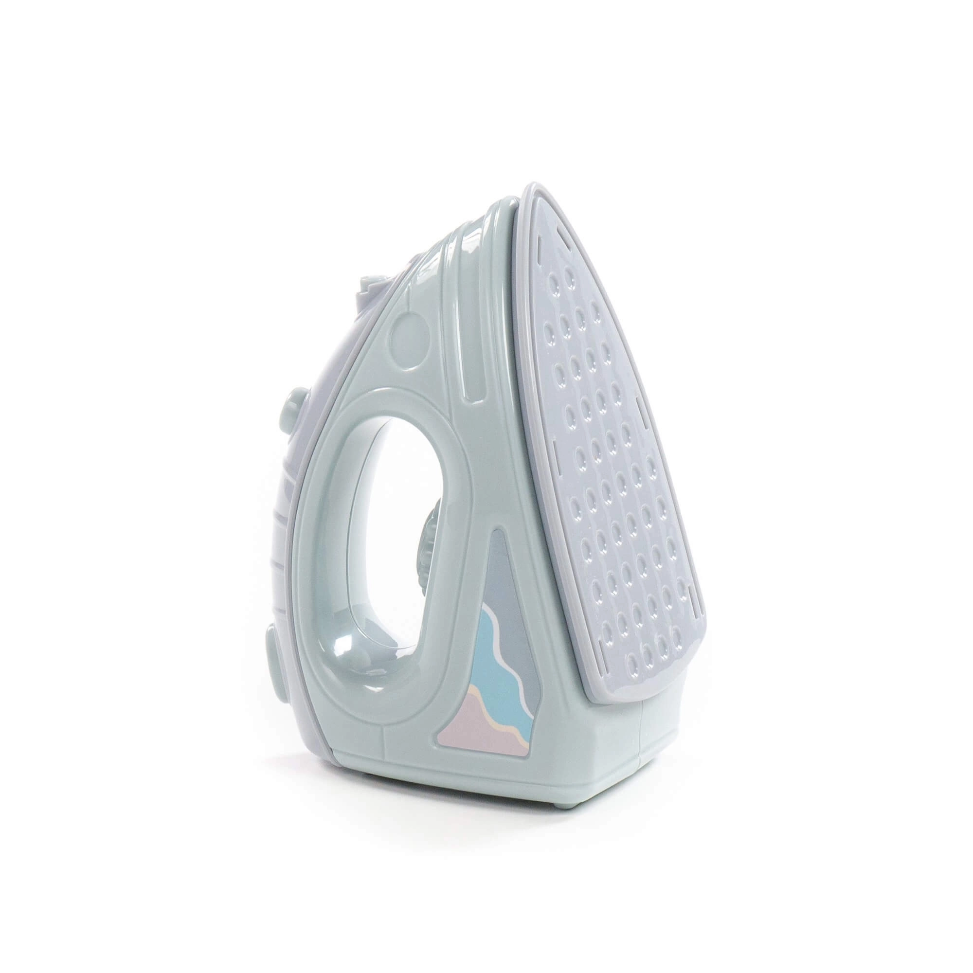 Den detaljerede strygesål med “damp”-huller og betjeningsknapper efterligner en rigtig husholdningsenhed, hvilket gør legen troværdig og sjov.
