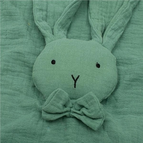 Den søde musselin-sovedukke New Baby Rabbit i mintfarve er en blød lille ledsager til babyer fra de allerførste dage. Den er lavet af 100 % økologisk bomuld, er blød at røre ved, giver en tryghedsfornemmelse og gør det nemmere at falde i søvn. Det minimalistiske design og de behagelige farver passer smukt sammen med andre musselinprodukter.