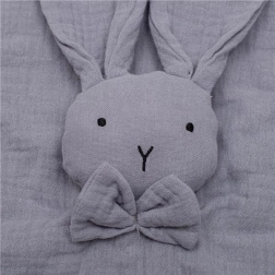 Den søde musselinsovende krammefigur NEW BABY Rabbit i grå er den ideelle første plyskammerat til baby. Den er lavet af blødt og behageligt musselinstof, der giver en følelse af tryghed og gør det lettere at falde i søvn. Det minimalistiske design og de blide, æstetiske farver passer perfekt sammen med andre musselintilbehør og danner et smukt sæt som en original barselsgave.