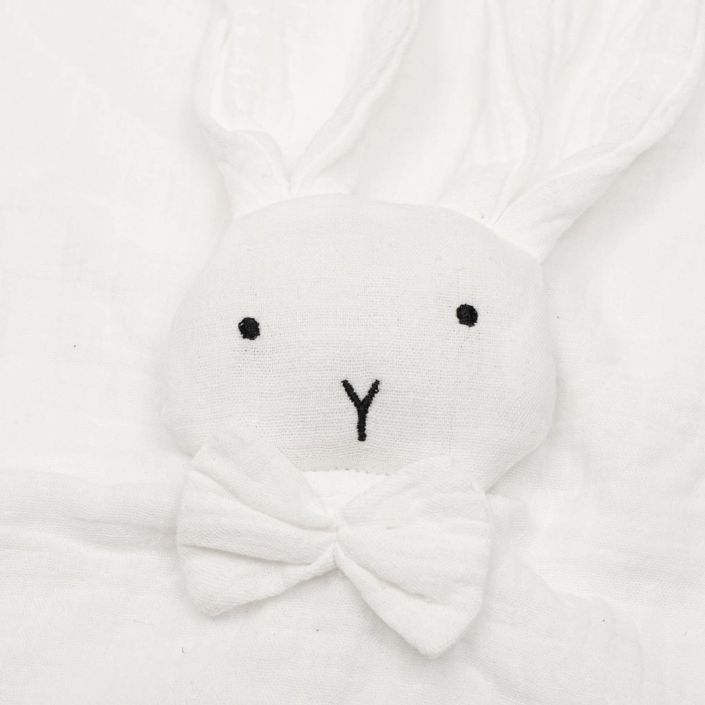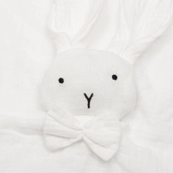 Den hvide muselins putteklud NEW BABY Rabbit er en blid krammeven, der hjælper babyen med at falde til ro, føle sig tryg og sove bedre. Det lette og åndbare muselinstof af økologisk bomuld er skånsomt mod den sarte babyhud og sikrer en behagelig følelse.