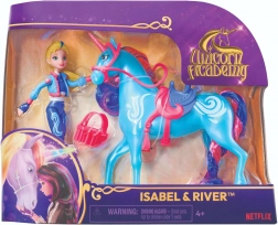 Sættet Isabel og River er inspireret af den populære animerede serie Unicorn Academy. Børn kan genskabe scener fra verdenen omkring Sparkle Lake eller finde på deres egne historier fulde af venskab, magi og ridt på enhjørninger. De bevægelige led gør det let at posere figuren og ride, mens enhjørningens farverige man og hale indbyder til styling.