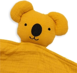 Den søde musselin-sovebamse NEW BABY Koala i farven Mustard giver baby/dukke en følelse af tryghed og komfort fra de første dage. Den er fremstillet af 100% økologisk bomuld, er blød at røre ved og hjælper med at falde lettere i søvn. Det minimalistiske design og de blide farver passer perfekt til andre tilbehør i musselin.
