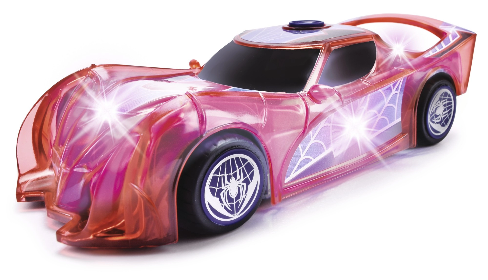 Det halvgennemsigtige karrosseri med spindelnætsmotiv lyser op under kørsel. Lysene skaber en spændende stemning og øger spillets attraktivitet selv i mørke.
