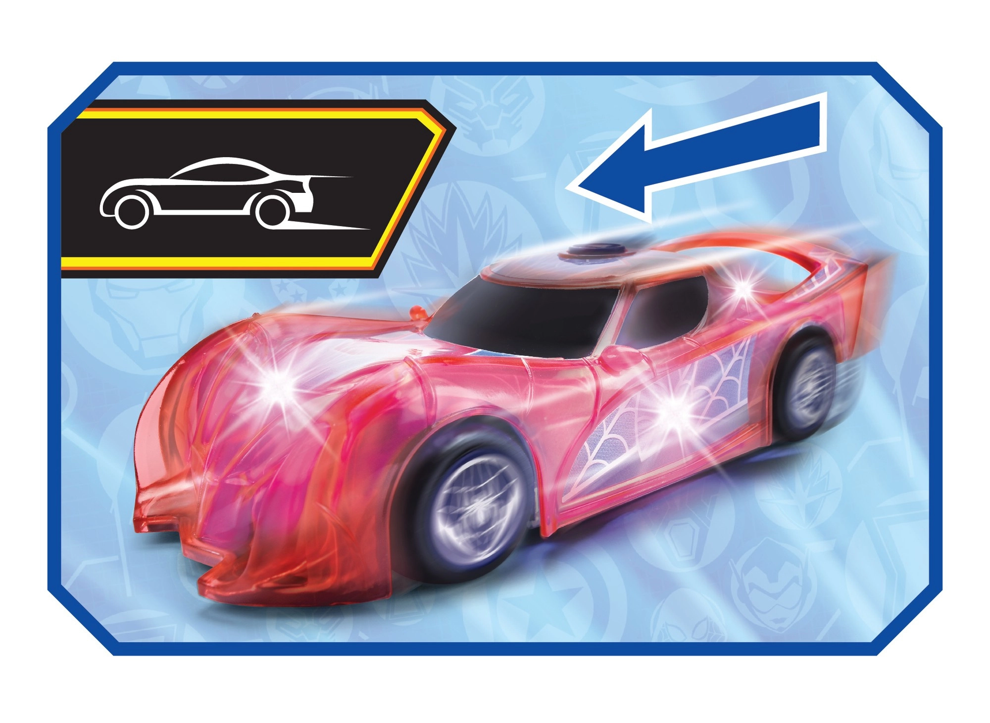 Karrosseri med spindelvæv, sportslige linjer og spoiler. Ideel til at genopføre scener fra MARVEL‑verdenen og til samlerudstilling.