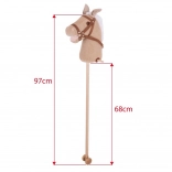 Cordfløjl kæphesten er den ideelle legeting for børn, der elsker at være i bevægelse. Denne hest har et blødt hoved i cordfløjl, en fyldig man og praktiske tøjler. To træhjul for enden af stangen sikrer jævn kørsel på flade overflader uden at efterlade spor.