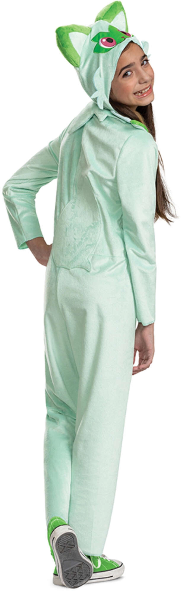 Træd ind i POKEMON-universet med den komfortable kigurumi af Sprigatito. Den lysegrønne heldragt med bladkrave og hætte med øjne og ører giver det komplette look af den populære figur. Takket være lynlåsen foran er den let at tage af og på og er perfekt til leg, fester og skole-karneval.