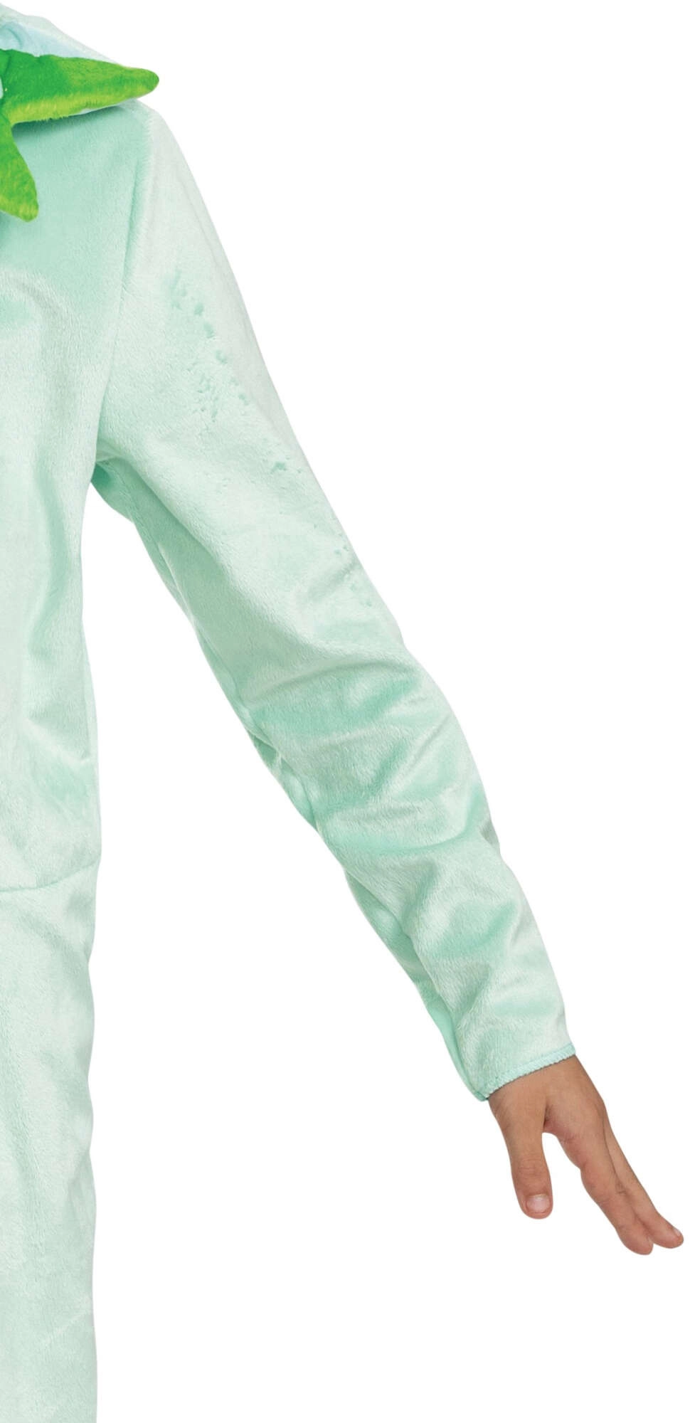 Den integrerede hætte med store ører, øjne og bladkrave efterligner troværdigt Sprigatitos udseende og giver kostumet en charmerende detalje.