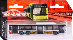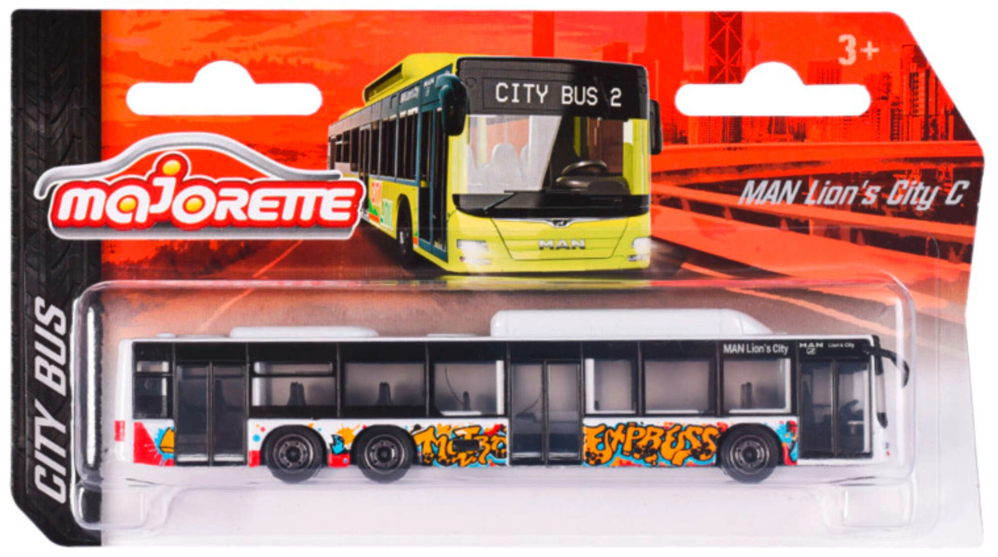 Oplev den detaljerede model MAN Lion's City C fra serien Majorette Trailer, som præsenterer køretøjer til transport af både passagerer og gods. Denne hvide bus med farvede elementer udmærker sig ved et realistisk look og høj kvalitet til langvarig leg.