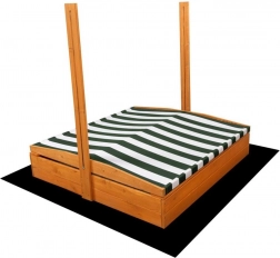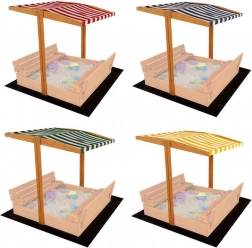 Baldakinen er designet til universel brug med de fleste kommercielt tilgængelige sandkasser 120 × 120 cm. De solide træstolper og den robuste dug skaber et sikkert og komfortabelt miljø til børns leg, mens den justerbare højde gør det let at regulere skyggen i løbet af dagen.