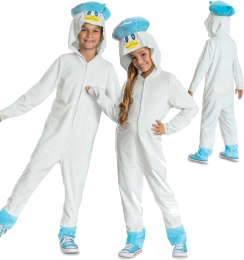 Blødt børnekostume i kigurumi-stil inspireret af POKEMON Quaxly byder på komfort, varmt materiale og nem lynlåslukning. Ideelt til fastelavn, leg derhjemme og afslapning – barnet tager hætten med andeansigt på og bliver straks til den populære vand-Pokémon.