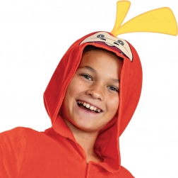Hætte med markante gule detaljer og et nuttet ansigt, der giver kostumet et troværdigt udseende og øjeblikkelig effekt.