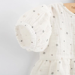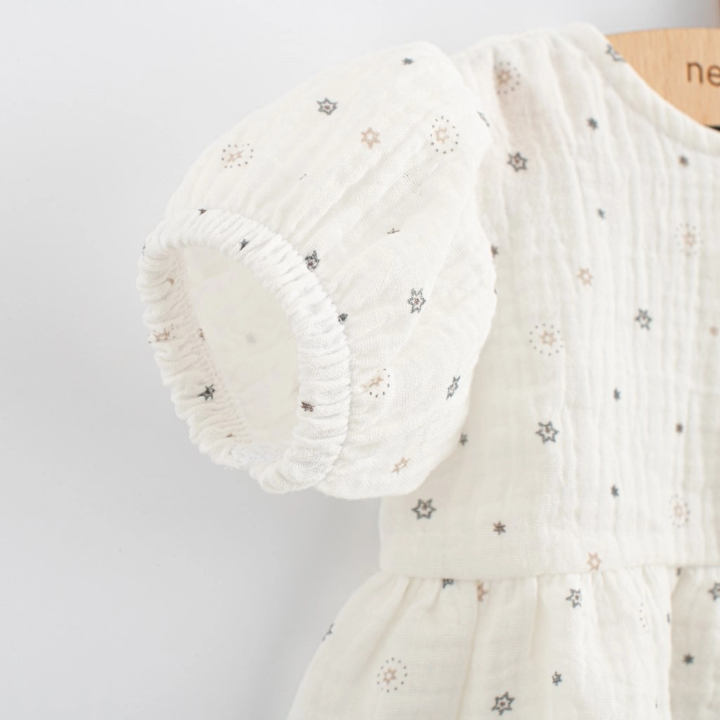 Sød og funktionel – musselinkjolen New Baby Zora er et godt valg til både hverdagsbrug og festlige øjeblikke. Takket være A-snittet sidder den behageligt og begrænser ikke babyens bevægelse. Den lette og luftige musselin sikrer komfort hele dagen, især på varme dage.
