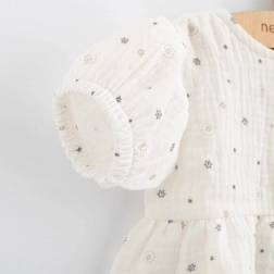 Stilfuld muslinkjole til små prinsesser, der kombinerer komfort og luftighed. Takket være A‑faconen tilpasser den sig smukt og begrænser ikke bevægelsen. Den bløde muslin af 100% bomuld er ekstra behagelig at røre ved og skånsom mod børns hud.