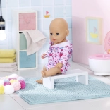 Badekåben er lavet af blødt tekstil, der er nemt at vaske og sørger for dukkens komfort.