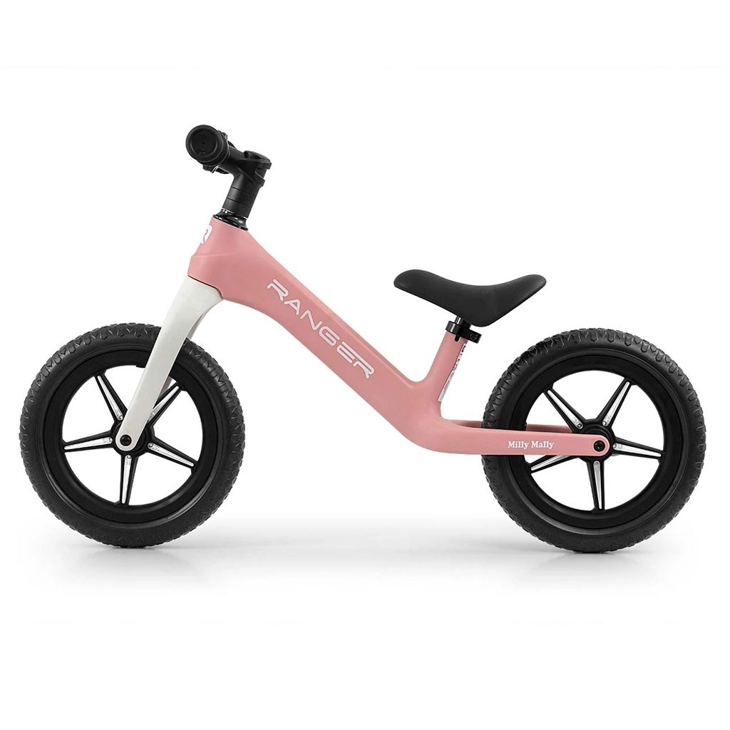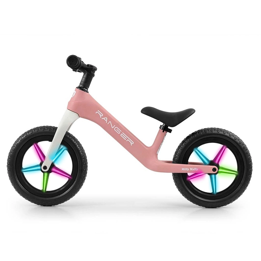 Løbecyklen MILLY MALLY Ranger Flash er et fremragende valg for små cyklister fra 2 år. Den ergonomiske form støtter korrekt kropsholdning og tryghed under kørsel, og den ultralette kompositramme gør håndtering og transport nem. De slangeløse EVA 12″ hjul slides ikke igennem, kræver ingen oppumpning og dæmper ujævnheder effektivt.