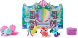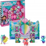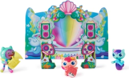 Denne undervandsscene fra den populære serie GABBY'S DOLLHOUSE er ideel til små fans af musik og fantasi. Sættet inkluderer de populære figurer DJ Catnip, MerCat, Sunny Cat og Kitty Narwhal med autentisk look og iøjnefaldende detaljer. De åbne muslinge‑sæder, den påsættelige mikrofon og det foldbare podium forvandler hver dag til en sjov forestilling.