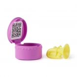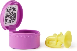 Åbne muslinge‑“lænestole” fungerer som standere, mikrofonen kan klipses på figurerne, og der medfølger også en lille overraskelse i en praktisk æske.