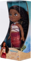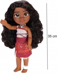 MOANA-dukken inspireret af Disney-filmen MOANA 2 giver børn et autentisk look af den elskede heltinde: lange, fyldige hår til styling, markante mørke øjne og traditionelt polynesisk kostume – lys top med røde mønstre og rød nederdel med tropisk print. En halskæde af muslinger understreger hendes forbindelse til havet.