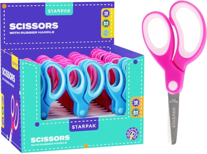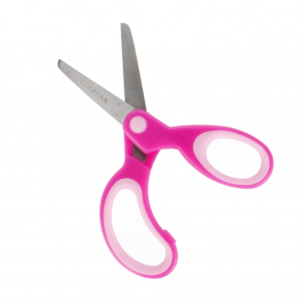 Denne børnesaks på 13 cm er designet til komfortabel og sikker brug i skolen og til kreativt arbejde derhjemme. Afrundede spidser og kvalitetsmetalblade sikrer præcis klipning af papir og lette materialer, mens de ergonomiske håndtag passer godt i børns hænder.