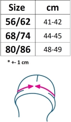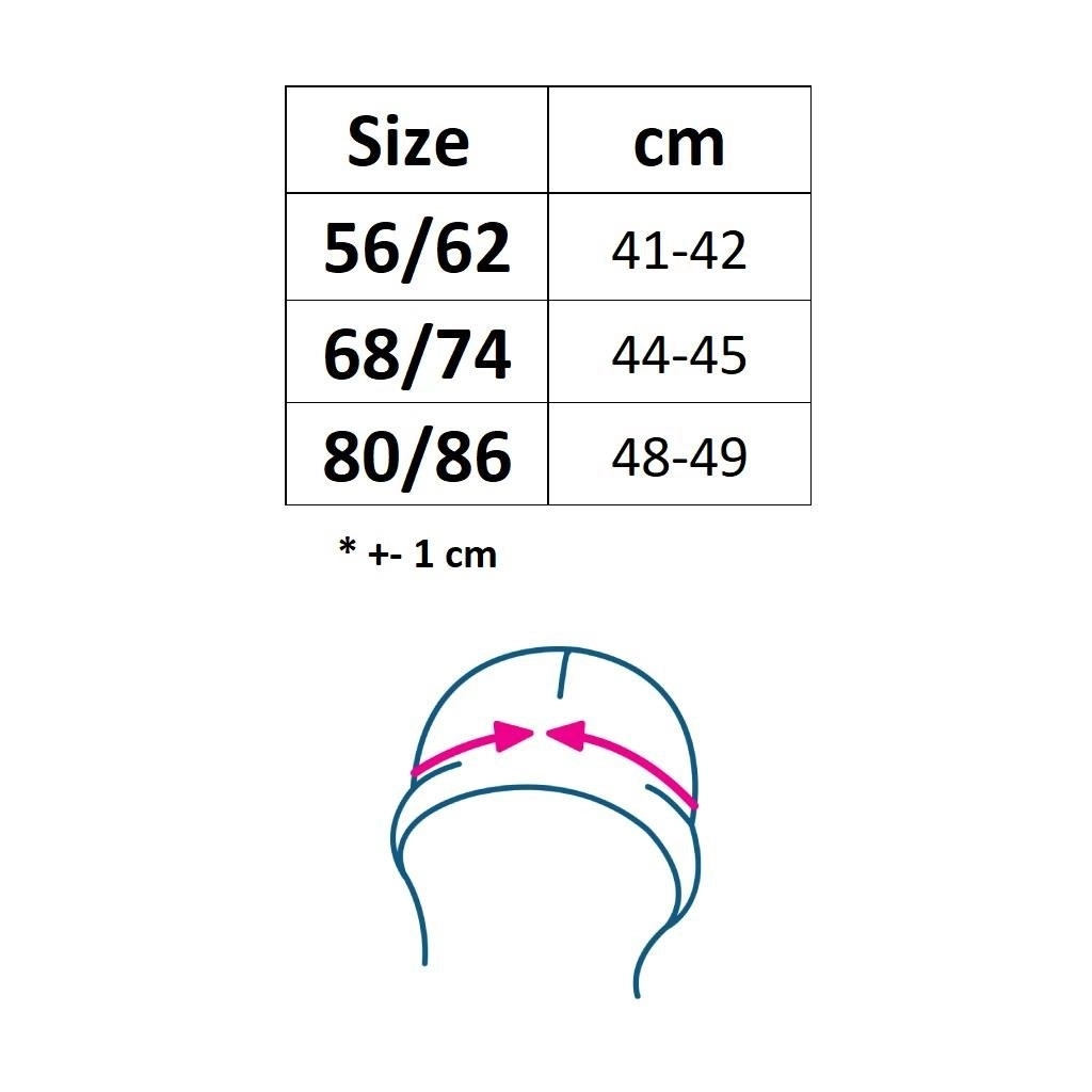 Kasketten er formet over ørerne, og takket være snorene kan du nemt tilpasse den, så den sidder sikkert selv under bevægelse, men samtidig ikke trykker. Certificeringen OEKO‑TEX STANDARD 100 garanterer materialets sikkerhed for børn.