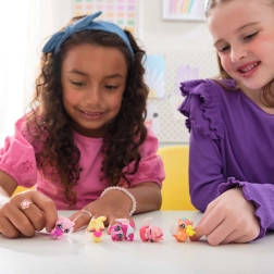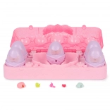 Der medfølger et lyserødt etui med slots, som opbevarer alle fem æg og mini-tilbehør sikkert. Sættet er ideelt til samling, leg og udstilling – en perfekt gave til små HATCHIMALS-fans.
