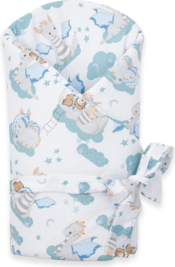 Svøbet NEW BABY Drage er fremstillet af kvalitets 100% bomuld med blødt antiallergisk polyesterfyld. Takket være det forstærkede fyld med en tykkelse på ca. 3 cm bevarer det en jævn varme og giver babyen en behagelig indpakning, som fremmer roligere søvn. Det fine børnemotiv med en lille drage vil glæde både baby og forældre.