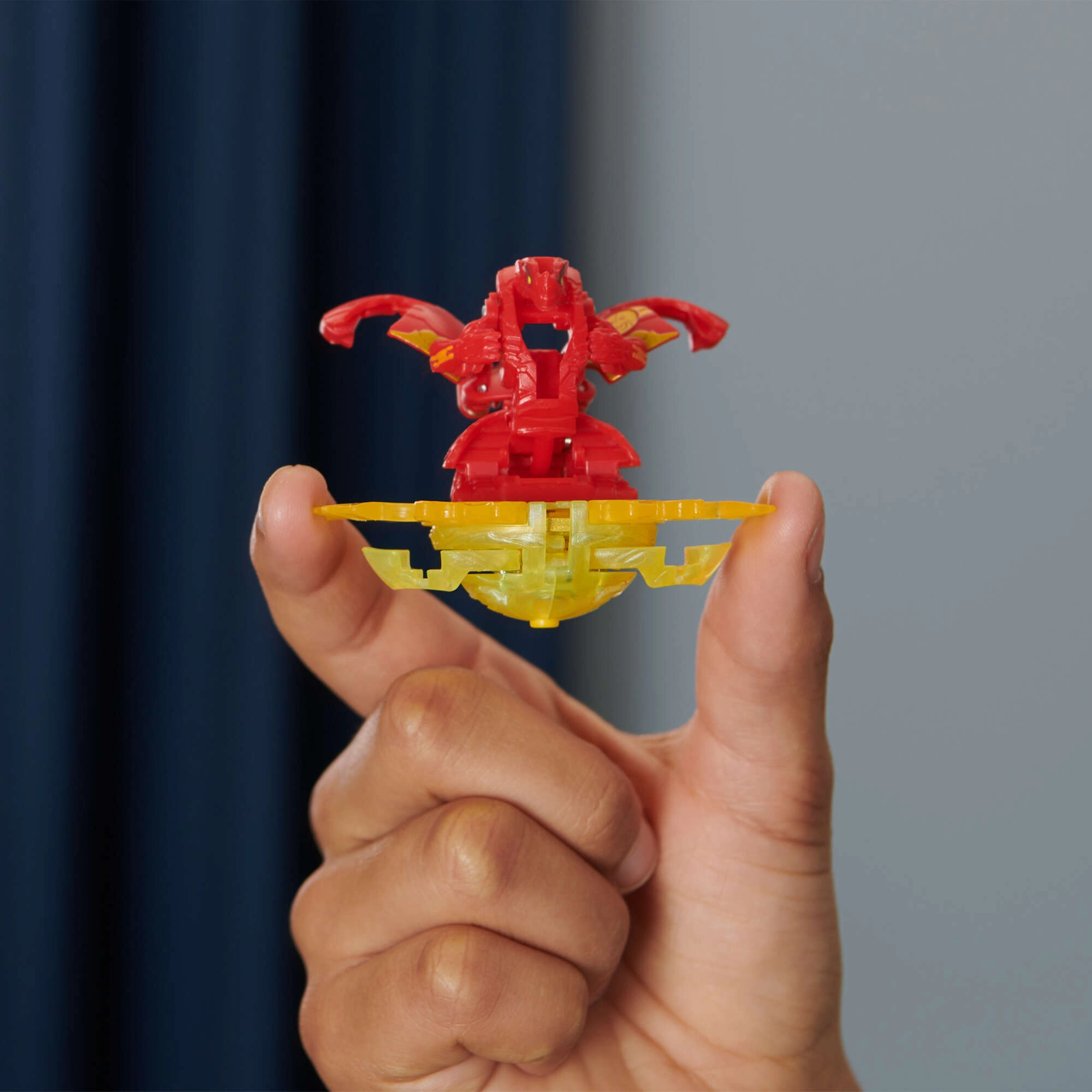 Pakken indeholder figuren, spillekort og tilbehør til start, så du kan gå i gang med det samme. Kvalitetsfinish, skarpe farver og et gennemtænkt transformationssystem vil glæde enhver BAKUGAN-fan.