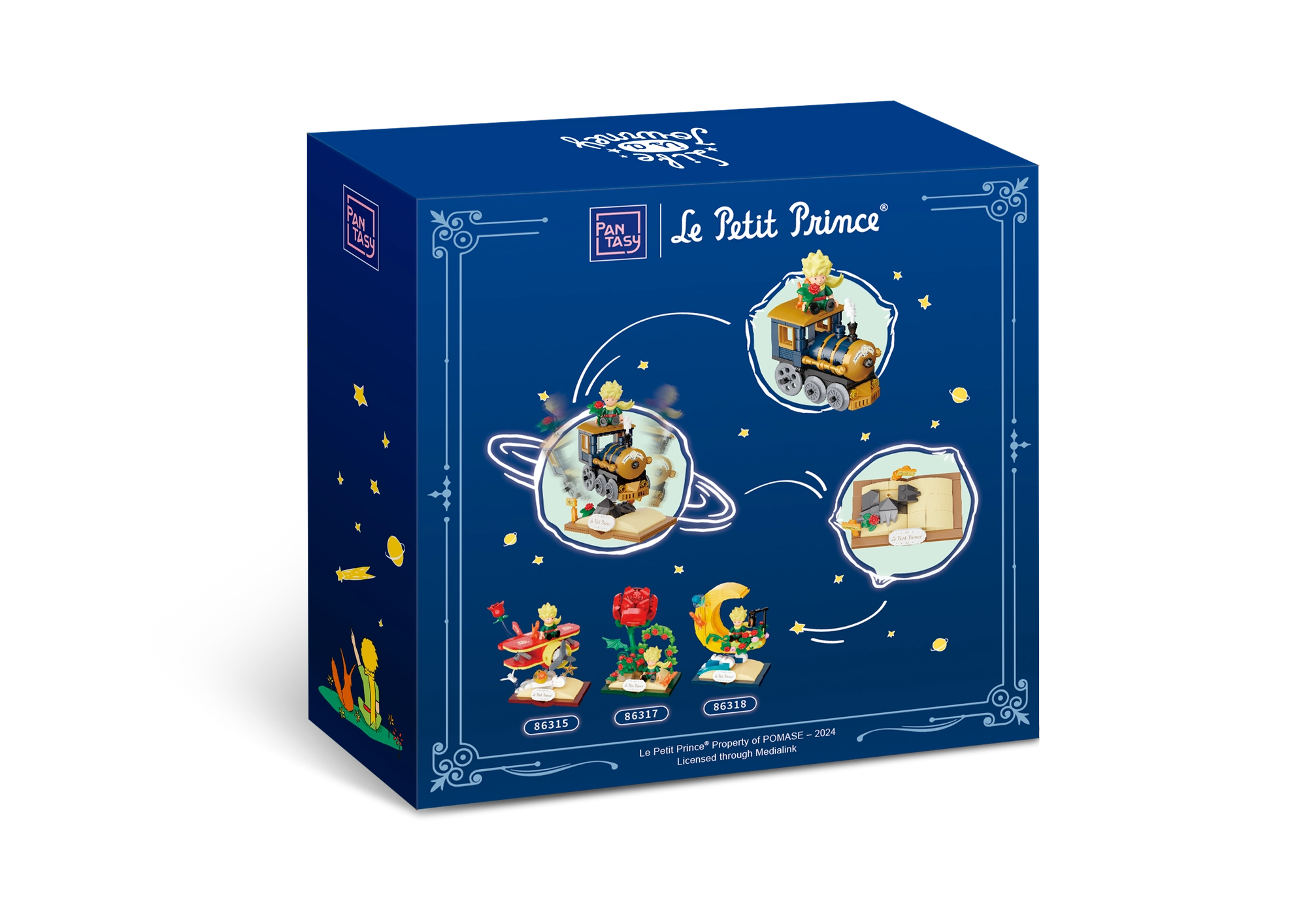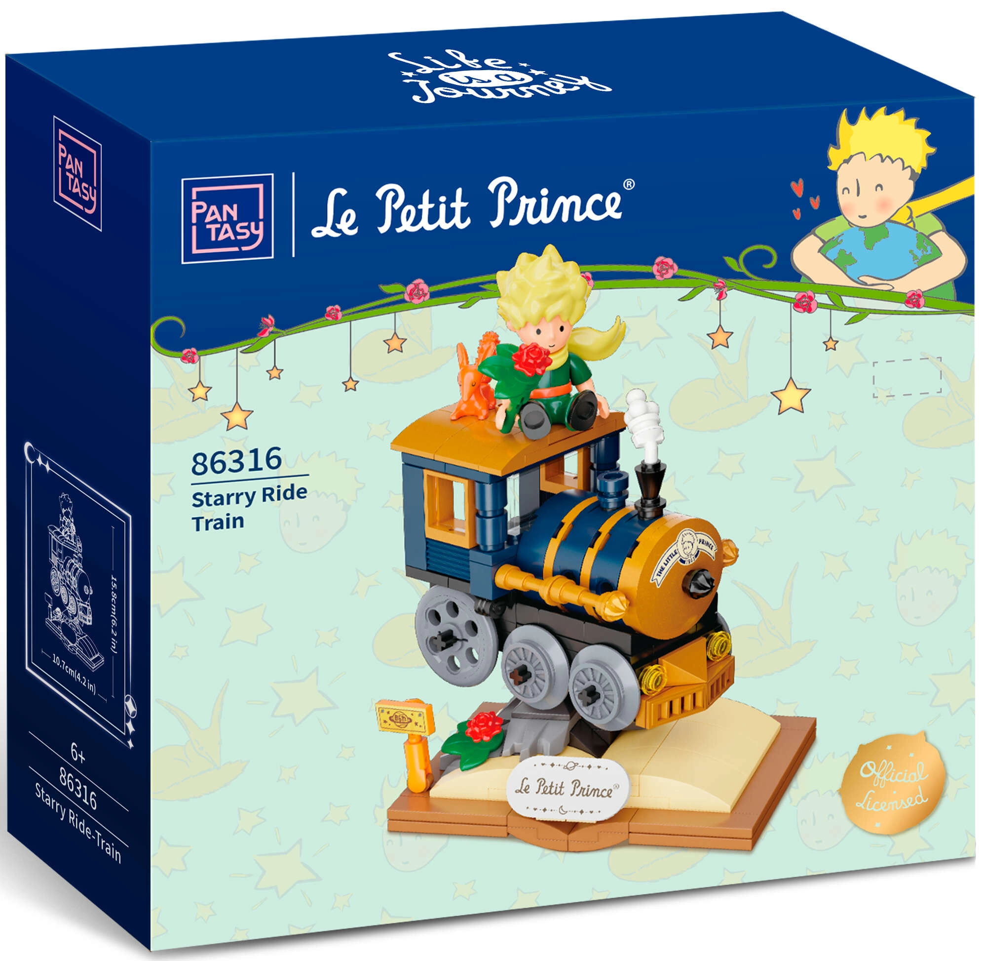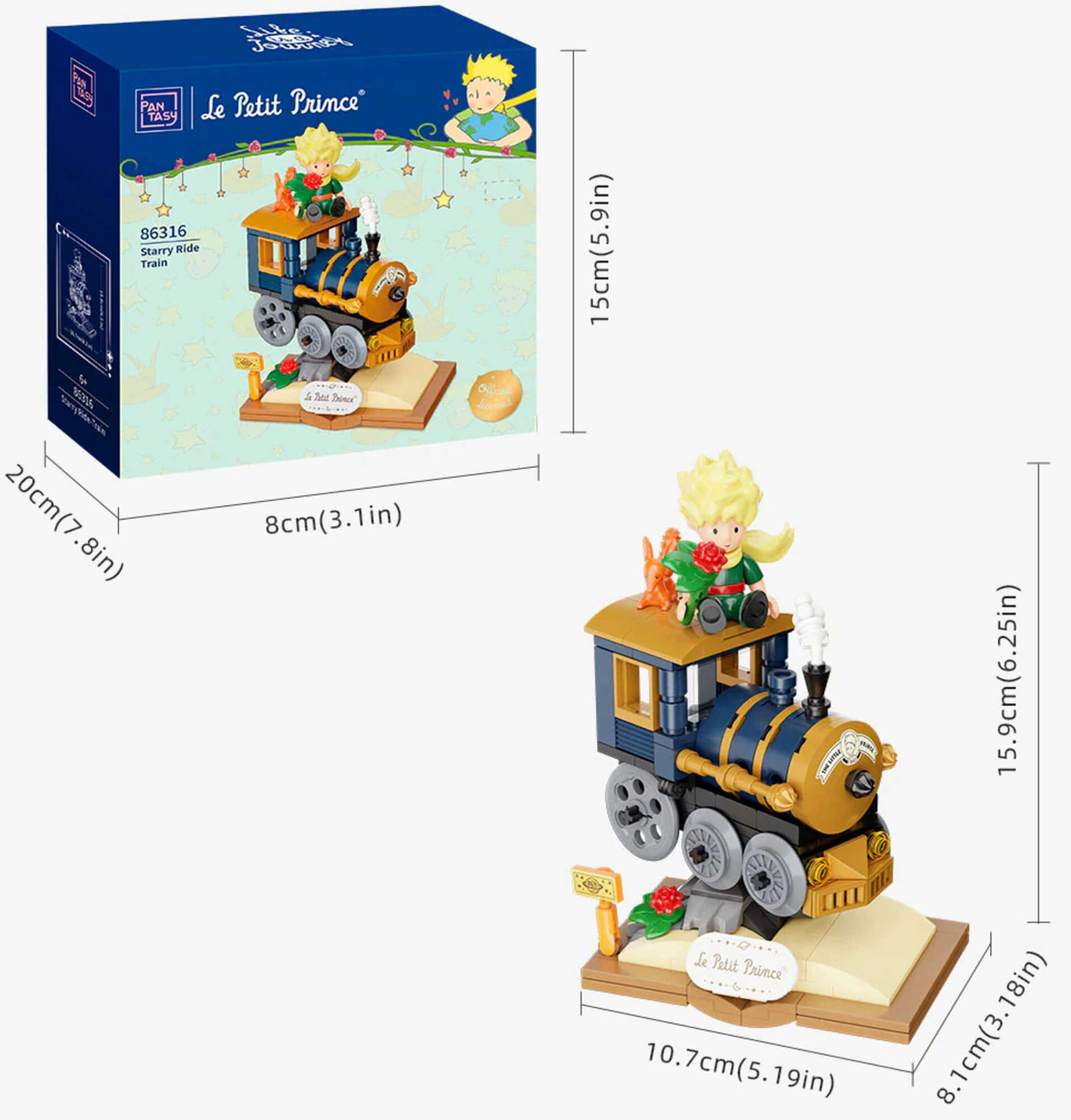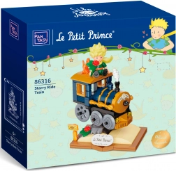 Dette byggesæt fra Pantasy – Starry Ride Series tager dig med ind i Den lille prins’ poetiske univers. Det elegante lille tog i toner af guld, marineblå og sort er placeret på en sokkel, der minder om en åben bog med teksten “Le Petit Prince”. Symbolske detaljer som roser, stjerner og skyer samt figuren af Den lille prins med ræven er inkluderet.