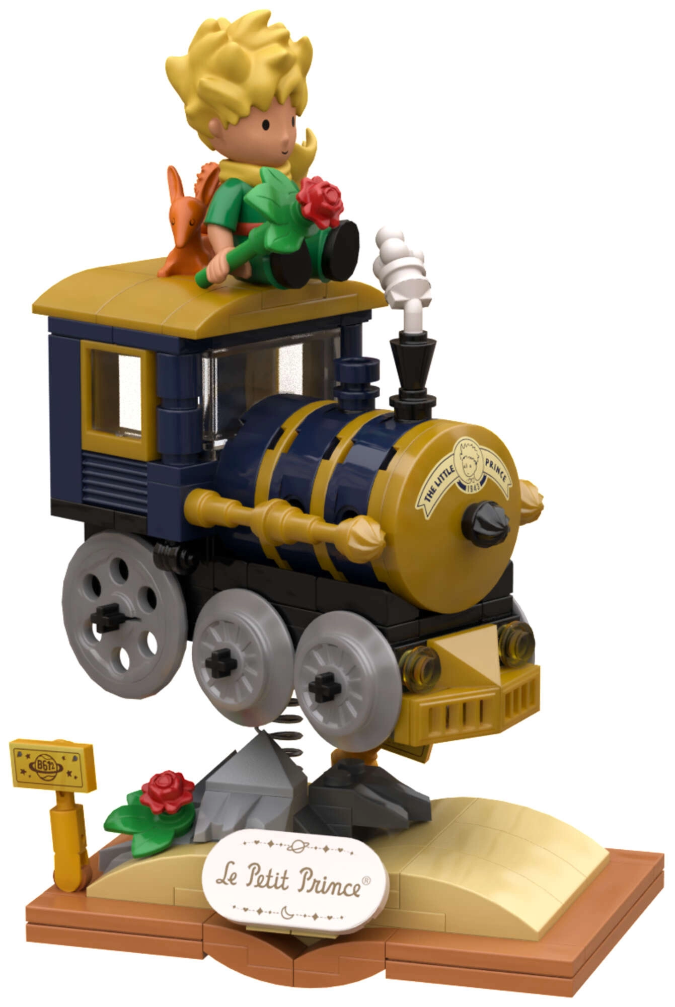 Byggesættet fremstiller et poetisk tog med teksten “Le Petit Prince” på en sokkel formet som en åben bog – en smuk samler- og dekorationsmodel.
