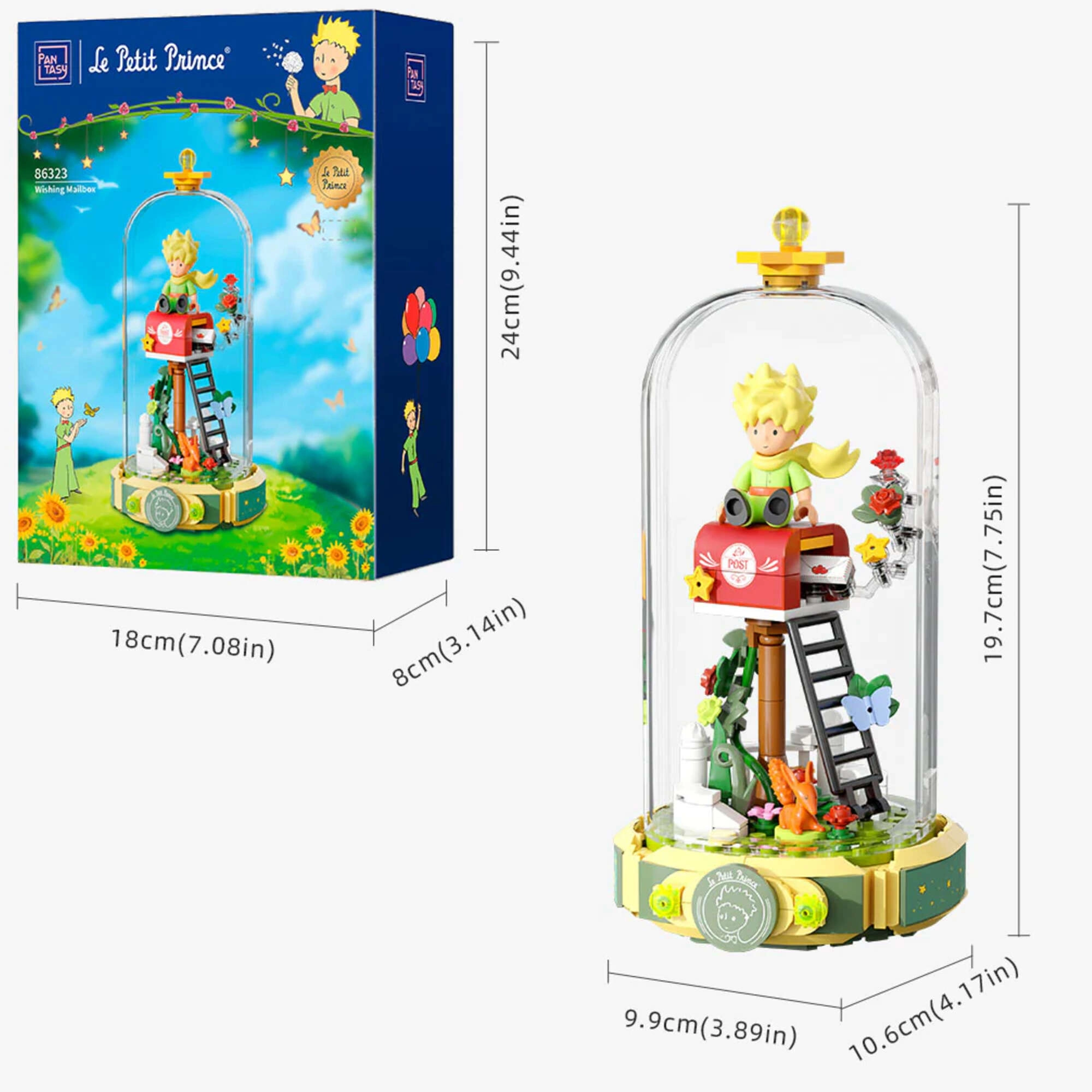 Oplev magien i fortællingen om Den lille prins med byggesættet Pantasy “Ønskepostkasse” med 185 dele. På en sokkel formet som en åben bog bygger du en scene med en klassisk rød postkasse, roser, Den lille prins og ræven. Sættet byder på præcis pasform, trykte detaljer uden klistermærker og er ideelt som dekoration og til kreativ leg for både børn og voksne.