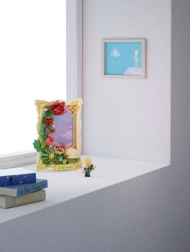 Byg en iøjnefaldende blomsterscene med en rose og fine detaljer i en ramme. Den færdige model står stabilt og er en flot interiørdekoration.