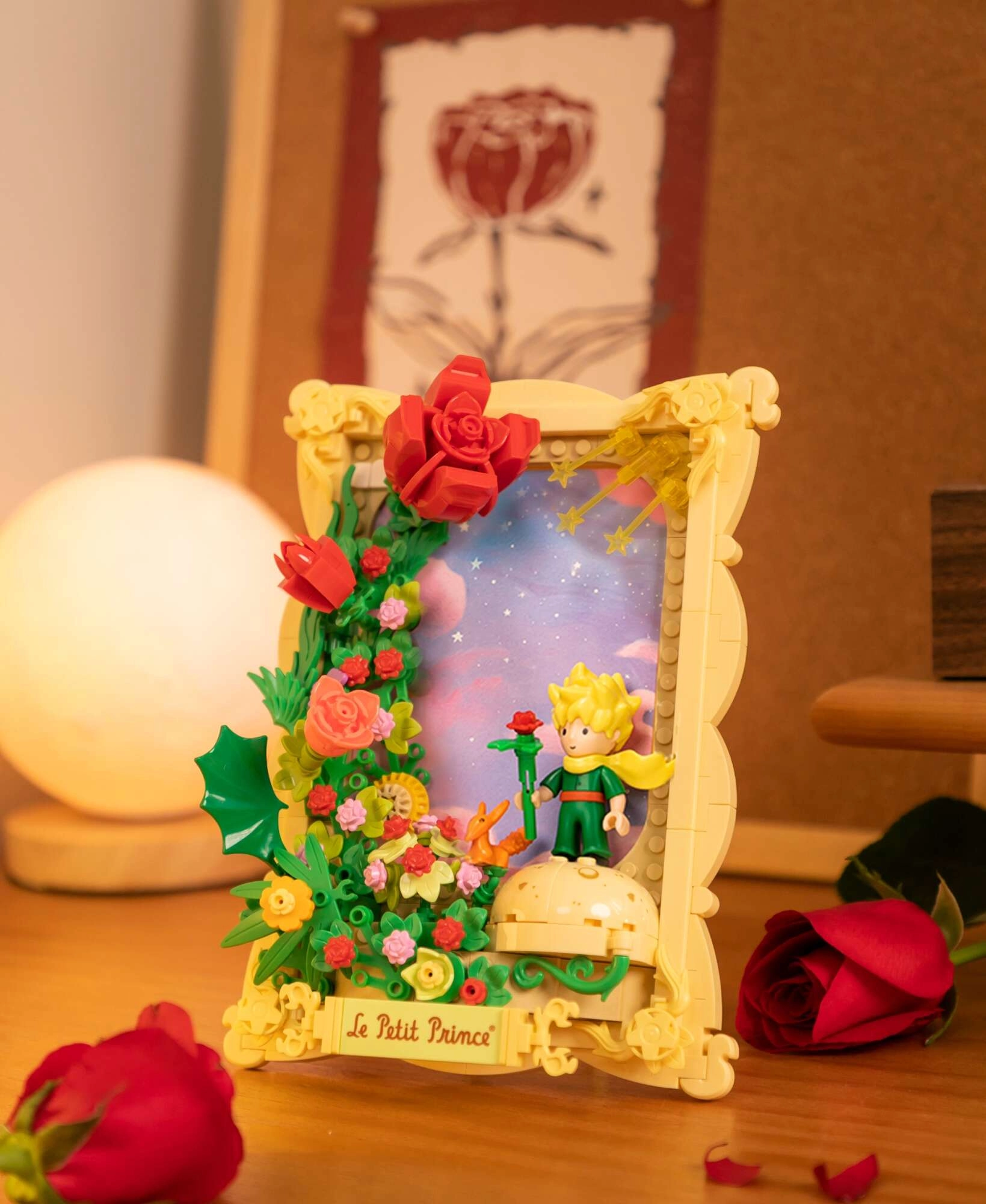 Dette designbyggesæt bringer poesien fra den tidløse fortælling til live som en original dekoration. Du bygger en markant rød rose med fint formede blade, en elegant ramme og en sokkel med teksten Le Petit Prince. Takket være kvalitets-ABS og præcis pasform er byggeriet flydende og resultatet stabilt – ideelt til en hylde, et skrivebord eller et børneværelse.