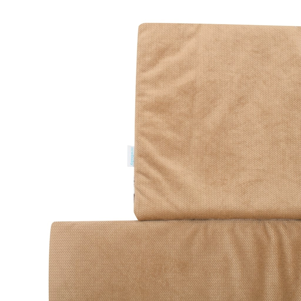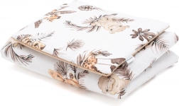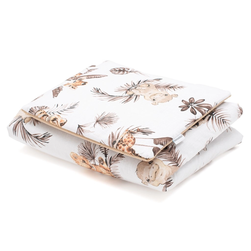 Det tosidede NEW BABY Safari sæt til barnevogn er designet til komfort fra fødslen. Den ene side af 100% bomuld med et sødt safariprint er blød og åndbar, den anden side af ultrablød velour varmer og holder formen over tid. Tæppet er suppleret med farvede bånd, som fanger babyens opmærksomhed og stimulerer sanserne.
