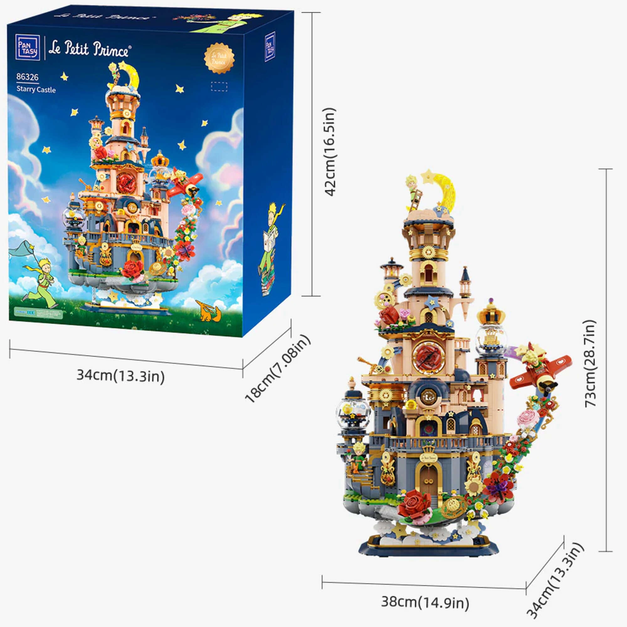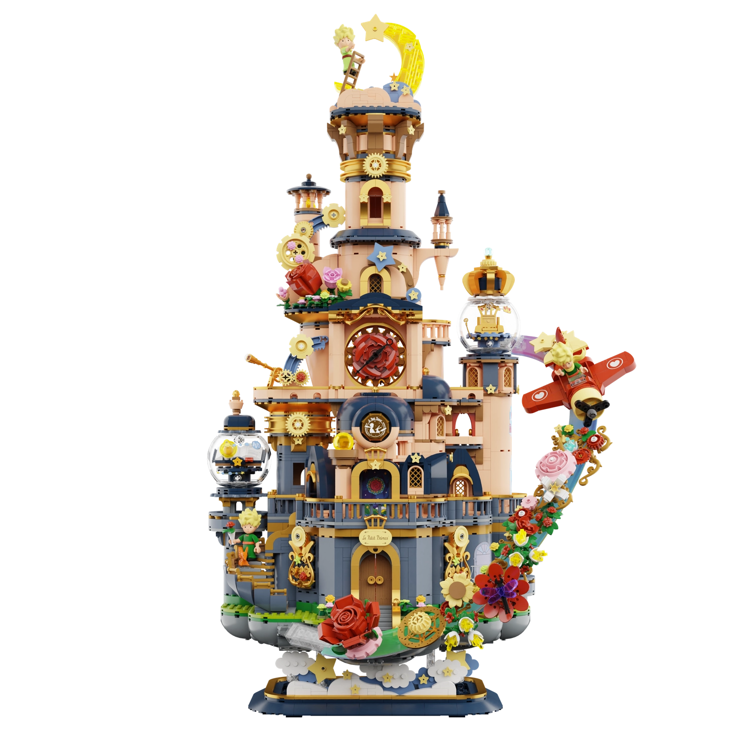 Træd ind i Le Petit Princes poetiske univers med en fortryllende slotmodel, der synes at svæve mellem stjernerne. Gennemarbejdede tårne, balkoner, blomsterdetaljer og synlige tandhjul skaber en effektfuld scenografi, der tager sig flot ud på enhver hylde. Byggesættet passer til både kreative byggere og passionerede samlere – fra første klods til sidste detalje.