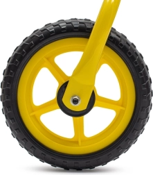 De store 12" EVA-hjul er punkterfri, absorberer ujævnheder og kræver ingen vedligeholdelse. Justerbar sædehøjde 36–42 cm vokser med barnet, mens skridsikre TPE-håndtag ligger sikkert i små hænder. Både styr og hjul er udstyret med lejer for smidig styring og jævn kørsel.