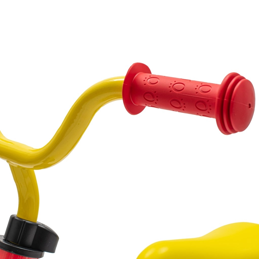 Blødt, højdejusterbart sæde (36–42 cm) og skridsikre TPE-håndtag for et sikkert greb til små hænder.