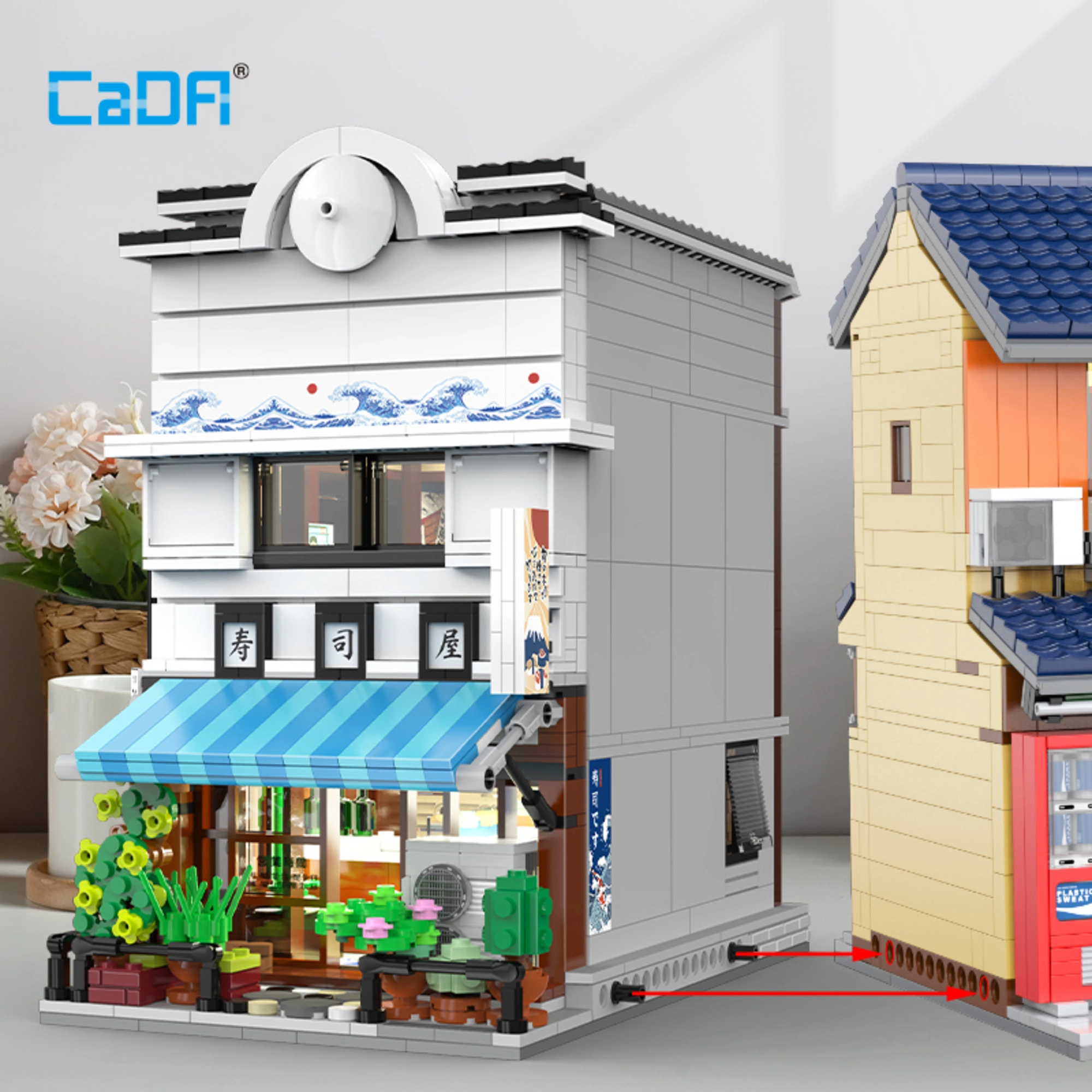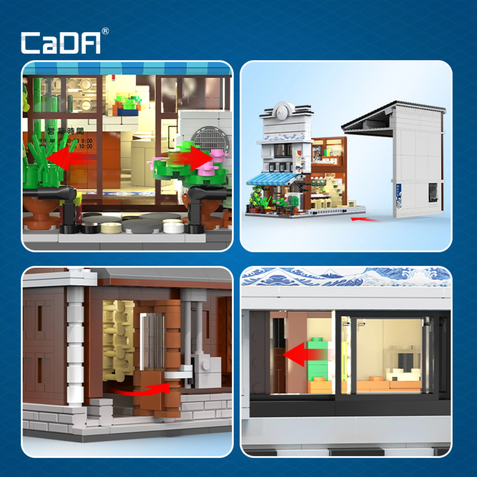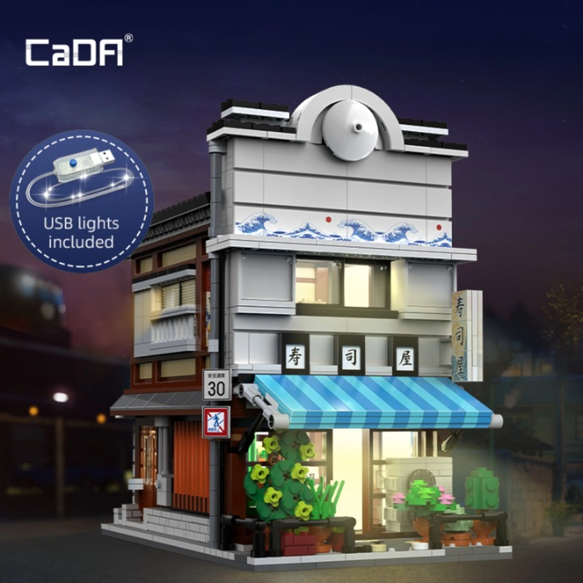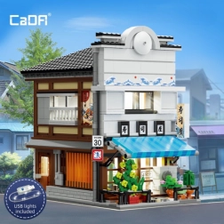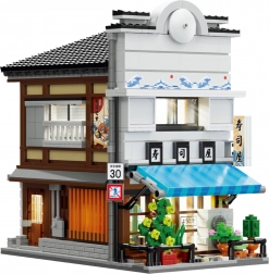 Dette designbyggesæt bringer en autentisk japansk to-etagers sushibutik med fokus på detaljer i både interiør og eksteriør. Den åbningsbare konstruktion gør det nemt at kigge ind – her finder du barstole, dekorativ bambus, trappe samt et hyggeligt værelse på første sal med seng, TV og kommode.