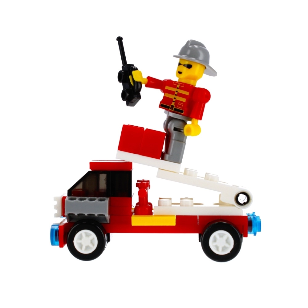 Robust lille køretøj med bevægelige dele og udstyr til indsats. Perfekt til scener fra brandberedskabet i byen.