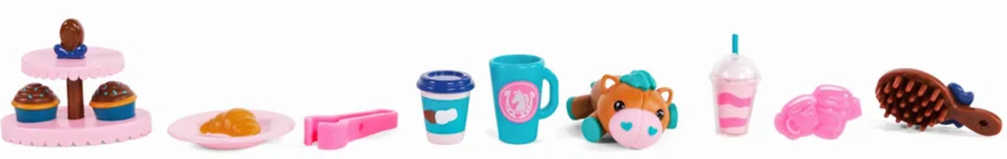 - Ponyfiguren Cocoa, cafévogn Bakery Café, tilbehør (kager, drikkevarer, børste, cupcake-stativ, kæledyr m.m.)