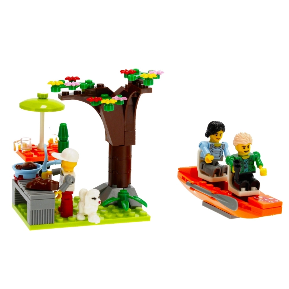 Ved bordet med drikkevarer, ved grillen under træet eller på vandet med kajak – sættet byder på masser af legescenarier.