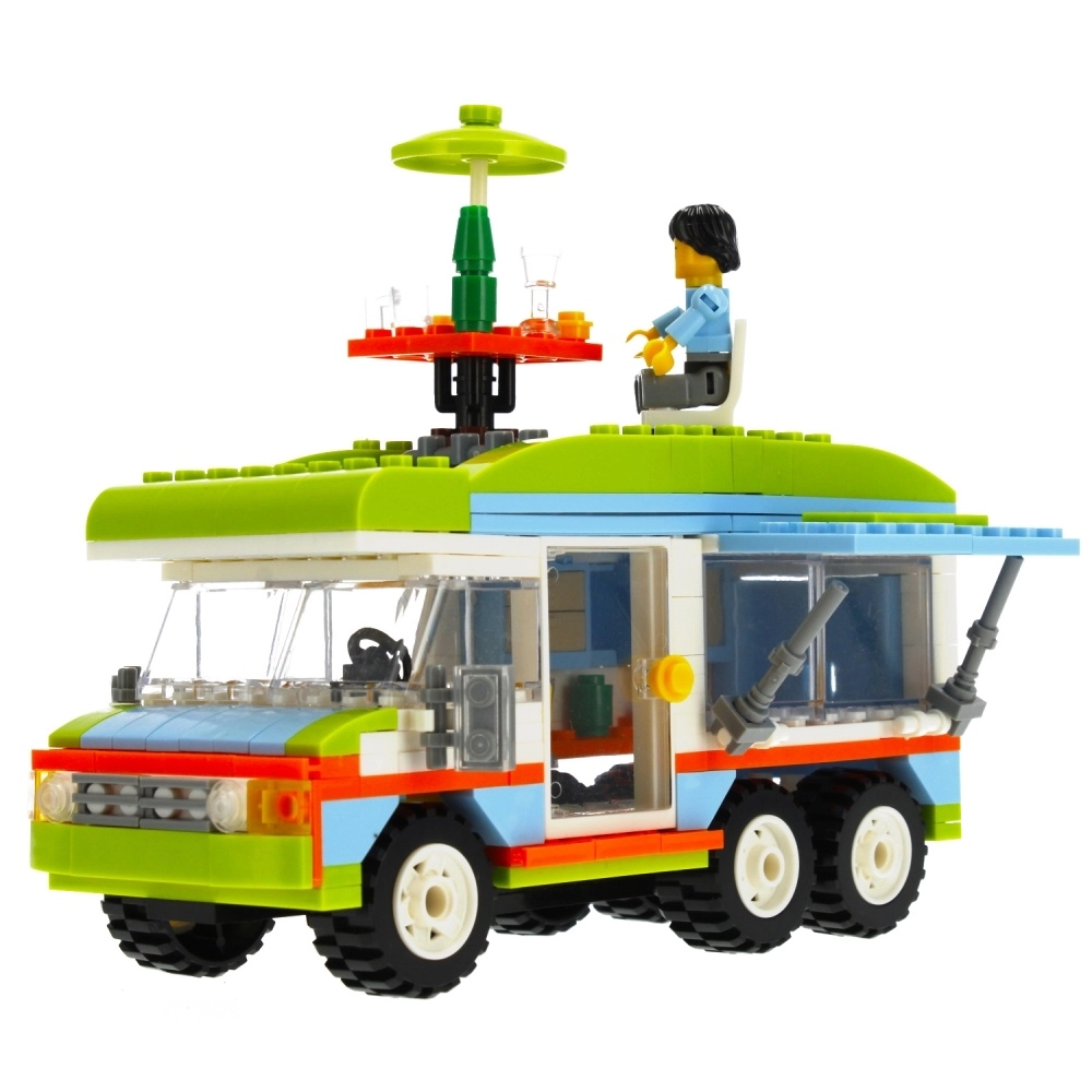 Byg dit eget campingeventyr! Med dette byggesæt skaber du en detaljeret campingvogn med åbnebare dele, tagholder til båd eller kajak, udendørs siddepladser, grill og scener til fritidsaktiviteter. Med 343 dele udvikler børn kreativitet og træner tålmodighed og rumlig forestillingsevne.