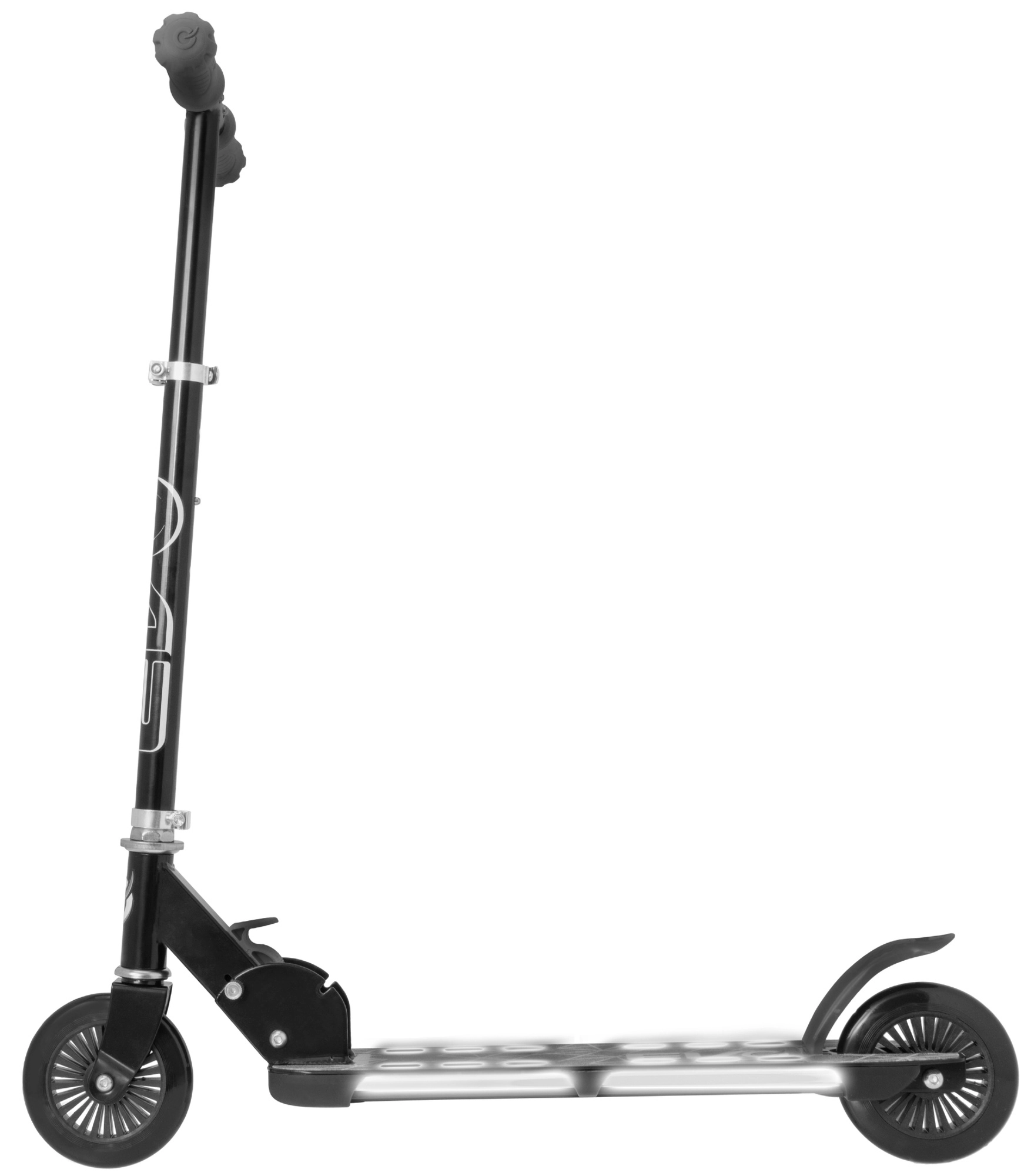 Gummihjul med ABEC-5 lejer er ideelle til glatte overflader. Bageste skærm fungerer som fodbremse for hurtig og sikker opbremsning.