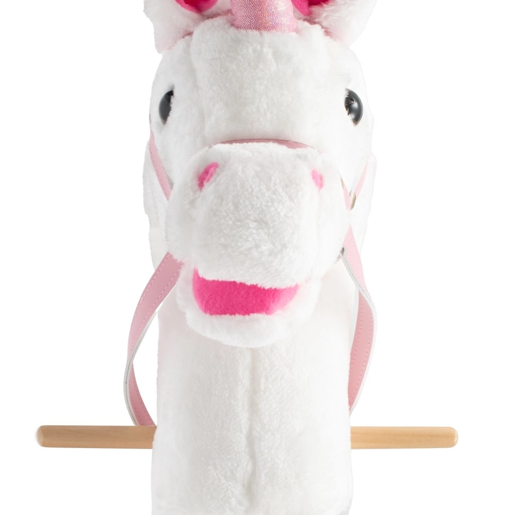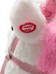Tryk på knappen, og enhjørningen laver hestelyde. Det hjælper børn med at leve sig ind i legen og giver endnu mere glæde.