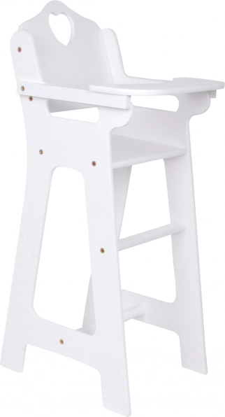 Denne hvide træ-dukkestol fra Small Foot er det ideelle tilbehør til børneværelset. Den byder på en solid konstruktion, bløde linjer og et dekorativt hjerteudskæring, som vil glæde enhver lille dukkepasser. Takket være højden egner den sig til det almindelige spisebord, så dukkerne kan “spise” sammen med familien.
