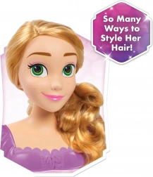 RAPUNZEL stylinghovedet med ikonisk, langt blond hår giver børn uendelig sjov med at rede, flette og pynte. Den stabile base og den høje kvalitet sikrer behagelig og sikker leg, mens tematisk tilbehør inspireret af eventyret vækker enhver barnlig fantasi til live.