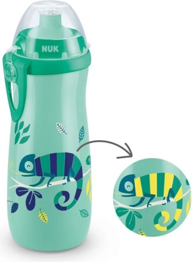 NUK Sports Cup Chameleon er en pålidelig sportsflaske til børn – perfekt til børnehave, skole og fritid. Med den bløde silikonetud med push‑pull kan børn drikke nemt og sikkert – træk ud for at drikke og tryk ind efter brug. Et hygiejnisk låg beskytter tuden mod snavs, og det robuste, BPA‑fri polypropylen-korpus tåler selv mere krævende brug.