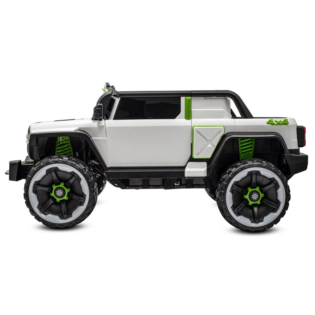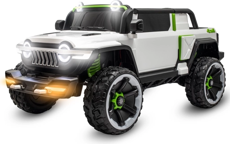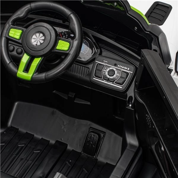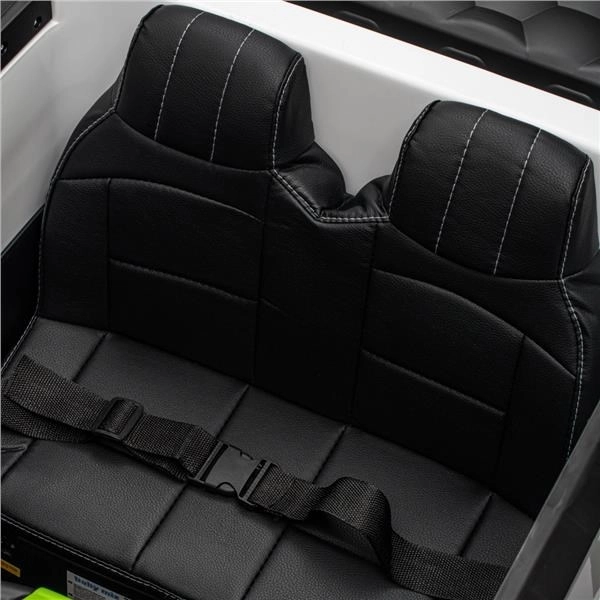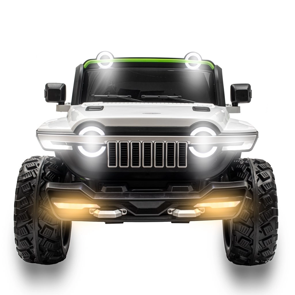 Det kraftige 12V-batteri driver to 45W motorer, som sammen med soft start-funktionen muliggør jævne igangsætninger uden ryk. For sikker betjening findes fodbrems og indstilling af 3 hastigheder. Forældre vil sætte pris på 2.4G fjernbetjening, mens børnene kan nyde LED-belysning, indbyggede historier og musik samt mulighed for at tilslutte eget indhold via USB.
