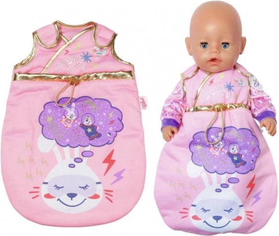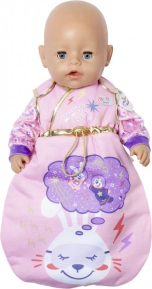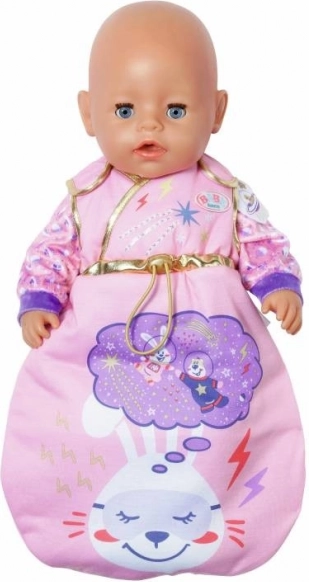 Giv din dukke rolig sengetid i den bløde sovepose BABY BORN Happy Birthday. Det stilfulde galaktiske print med sol, måne, stjerner og festlige motiver, suppleret med gyldne kanter, fanger blikket ved første øjekast og matcher fødselsdagskollektionen perfekt.